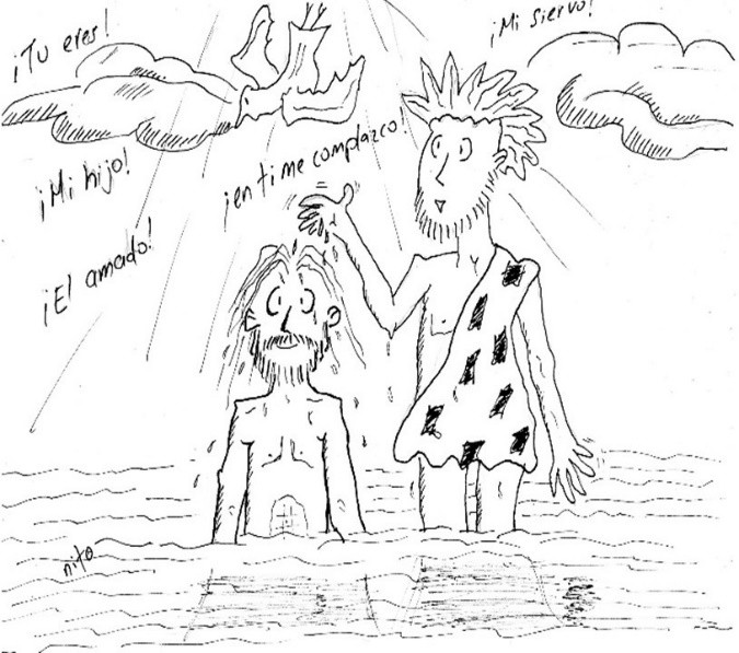 «Tú eres mi Hijo, el amado; en ti me complazco». La Santísima Trinidad se manifiesta en el Jordán. Jesús asciende de las aguas bautismales investido del Espíritu y reconocido por la voz del Padre. Todo bautizado recibe al Dios Trino y se convierte en hijo, junto con el Hijo, transformándose también en lugar de encuentro con Dios. Mons. René Mancilla